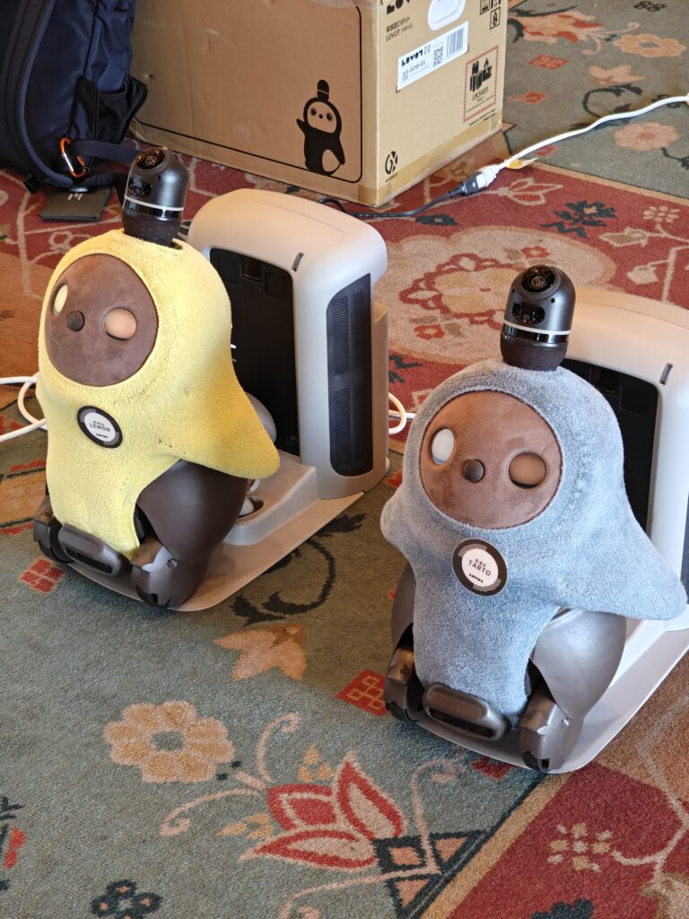 TAISコードを取得したばかりのLOVOT(らぼっと)も2体出展しました。
